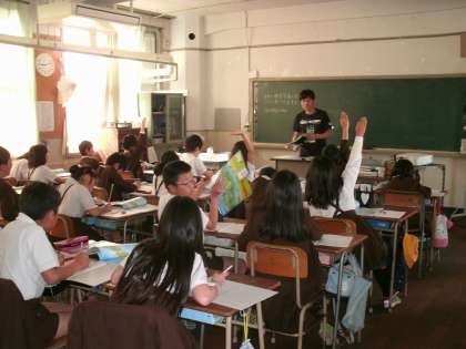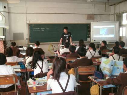5年2組は、社会科の学習をしていました。日本の衛星写真と地図を見比べて、気が付いたことを発表していました。