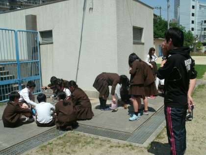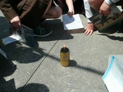 6年生は、理科の学習をしていました。「もののもえかた」の実験をしていました。前回から改良した空き缶を使って燃え方を調べていました。