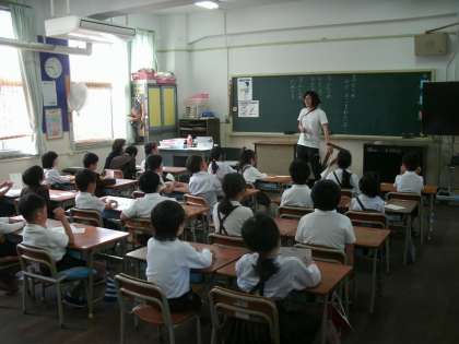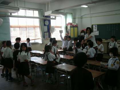 1年1組は、名刺交換をしていました。自分で作った3枚の名刺をクラスの友達と交換していました。クラスの友達の名前を早く全員おぼえましょうね。