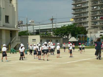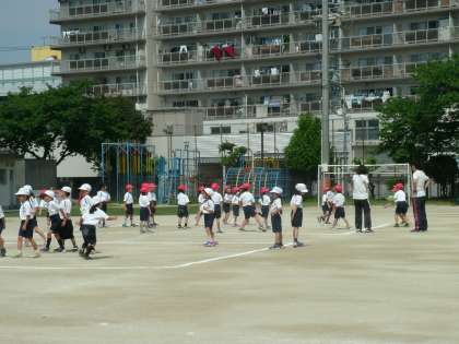 2時間目は、運動場で体育の学習をしていました。ボールを使った運動をしていました。ドッジボールをしているところです。