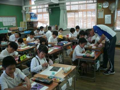 3年1組は、図画工作の学習をしていました。「名前デザイナー」の続きをしていました。