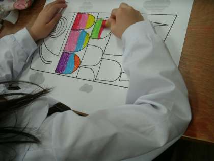 1年1組は、図画工作の学習をしていました。こいのぼりのうろこをきれいにぬっていました。