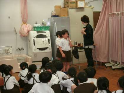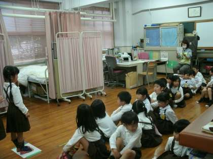 1年2組は、保健室で視力検査をしていました。今日は1・2年生の視力検査が行われます。