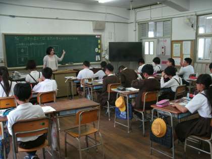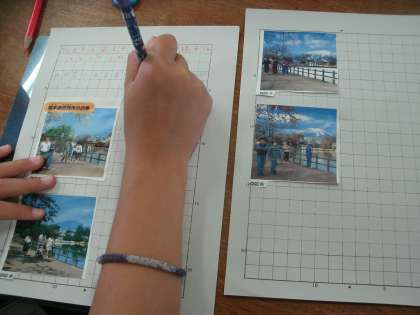 5年1組は、社会科の学習をしていました。日本の国土では、自然の様子がどうちがうのか、四季による自然やくらしのちがいを4枚の写真を見ながら考えていました。