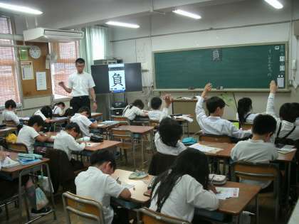 3年1組は、国語の学習をしていました。新出漢字の「勝」「球」「負」を練習していました。