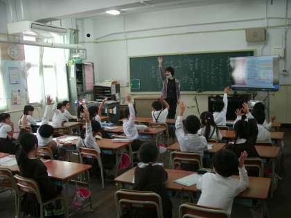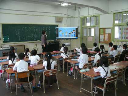 1年2組は、国語の学習の後、英語の短いお話を映像で見ていました。「誕生日おめでとう」と「ありがとう」は、しっかりと聞き取っていました。どんな内容だったのか理解できていました。
