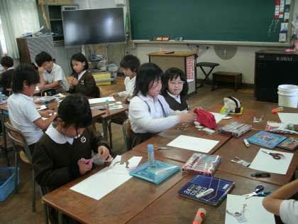 3年2組は、図画工作の学習をしていました。誕生日列車を作っていました。