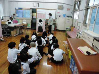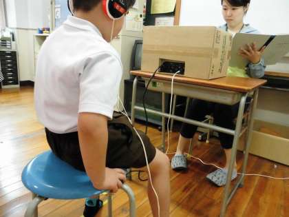 1年1・2組ともに聴力検査をしました。保健の嶋田先生からどうやってうけるか説明をしてもらいました。しっかり聞いて検査することができました。また待っている子どもたちは静かに待つことができていました。集団生活を円滑におくるためにはルールを守って行動することがとても大切です。その意味で1年生の態度は素晴らしかったです。よくがんばりました。