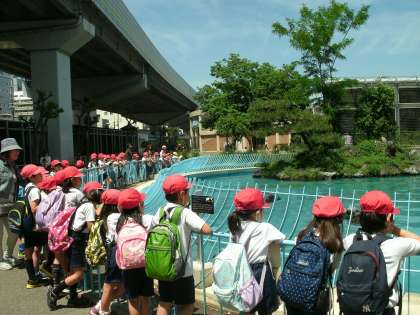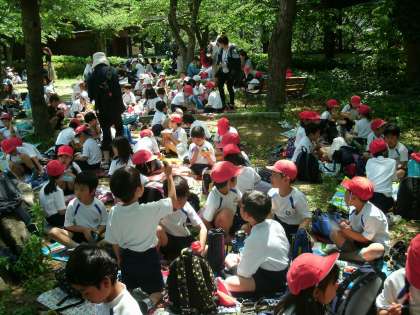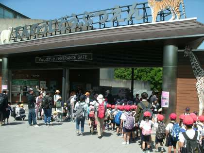 1年生と2年生は、天王寺動物園に遠足に行きました。天王寺ゲートから入園しました。動物園の中は、たくさんの学校や幼稚園・保育園の子どもたちでにぎわっていました。日差しはきつかったのですが、お弁当はさわやかな木陰でおいしく食べることができました。