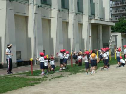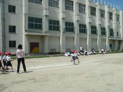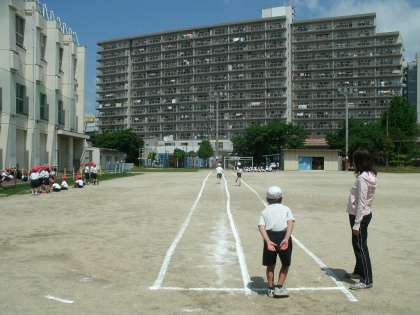 1年生にとって50メートルをまっすぐにコースから外れずに走るのは、簡単なことではありません。みんな頑張って走っていました。