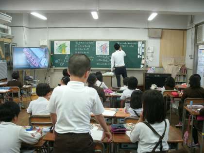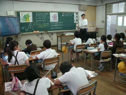 3年2組は、社会科の学習をしていました。「土地の使われ方」の学習で、なぜ工場は海の近くに多いのか考えていました。