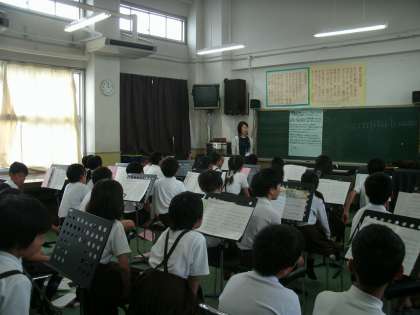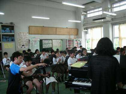 5年生は、音楽室でリコーダーと合唱の練習をしていました。特別ゲストに学生時代合唱部だった保健の先生を迎え、合唱の練習をしていました。先生のきれいな歌声をお手本にしてみんながんばって歌っていました。