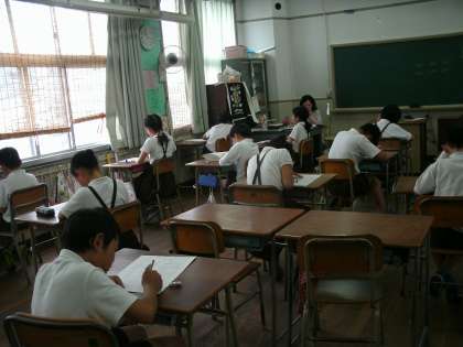 5年1組は、算数のテストをしていました。「比例」のテストでした。