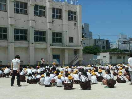 本日の3時間目に、たてわり班会議を行いました。各教室で名簿の作成などをした後、運動場で整列の練習をしました。担当の先生から話を聞き、退場の練習もしました。退場は、1年生から順番に教室に向かいます。
