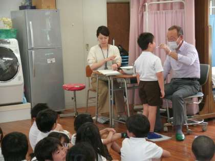 1年2組の歯科検診の様子です。大きく口をあけて、しっかり見ていただきました。