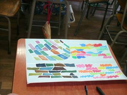 6年生は、図画工作の作品を仕上げていました。「色いろいろ」が仕上がりました。