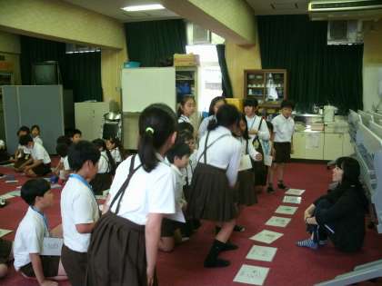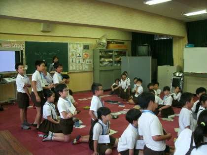 4年生は、多目的室で外国語活動をしていました。天気の学習をした後、絵カードをならべて、じゃんけんゲームを楽しんでいました。