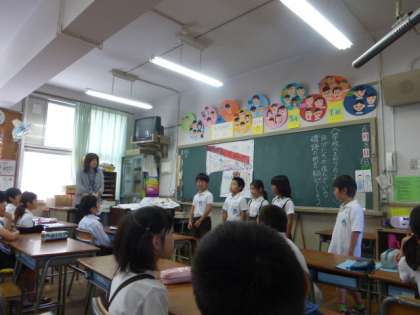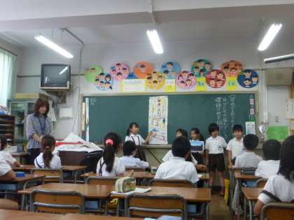 3年生は、社会科の学習で「学校のまわりのようす」という単元で、磯路の町の様子についてグループで発表していました。