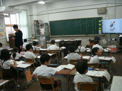 2年2組は、国語の学習をしていました。「かたかなで書くことば」を種類ごとに考えてノートに書いていました。