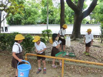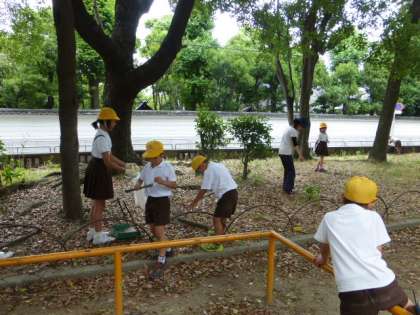 2年生と4年生は、磯路中央公園でお掃除をしました。地域の方々も一緒でした。