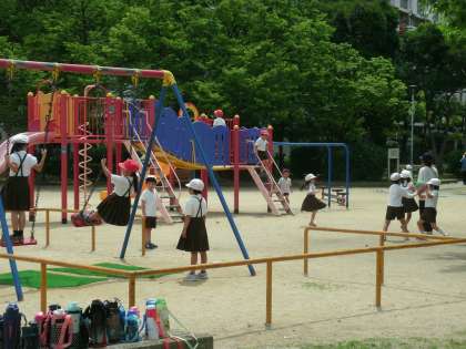 1年生は、生活科の学習で磯路中央公園へ出かけました。遊具で遊んだり、草花を観察したりしました。