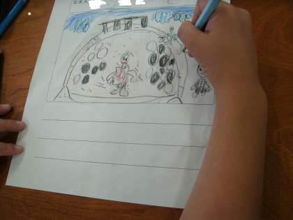1年1組は、生活科の学習をしていました。昨日出かけた磯路中央公園での活動の様子を絵日記に表していました。絵が描けたら担任の先生に見せに行き様子の説明を楽しそうにしていました。
