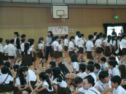 各クラスで考えたお店を、縦割り班でまわります。