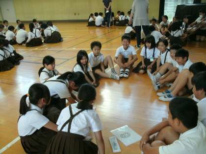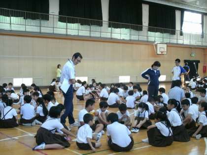 今朝の児童集会は、「いそじウキウキランド」のふり返りをしました。