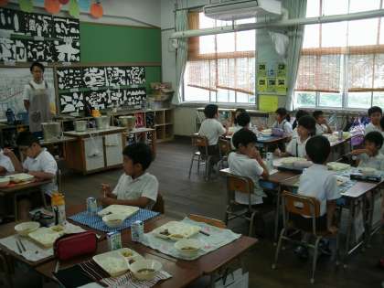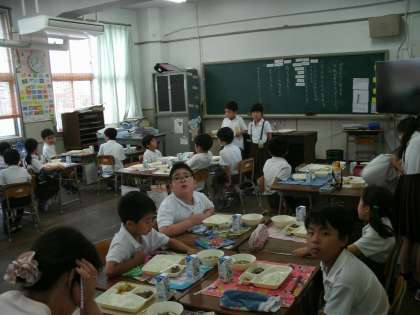 2年2組の給食風景です。「いただきます」が元気よくできます。