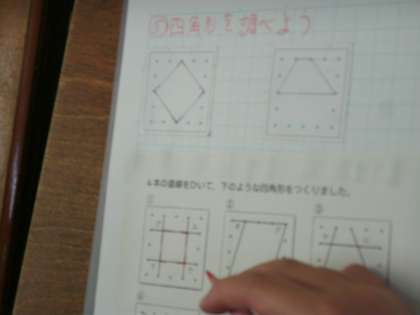 4年生は、算数の学習をしていました。いろいろな四角形について調べていました。直角がどこにあるか調べているところです。