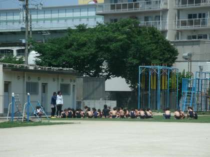 1年生は、3時間目にプールに入りました。