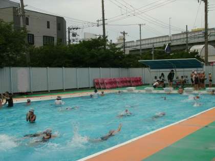 5.6年生は、クロールの練習を、泳力別のコースに分かれて行っていました。