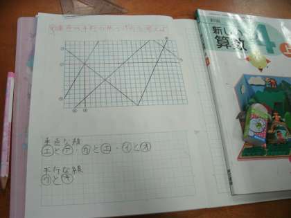 4年生は、算数の学習をしていました。垂直や平行な線の調べ方を考えていました。