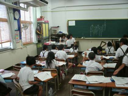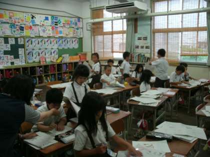 1年1組は、宿題プリントや学習プリントのまちがい直しをしていました。まちがい直しが終わり、担任の先生のチェックがすむと、プリントファイルにとじていきます。