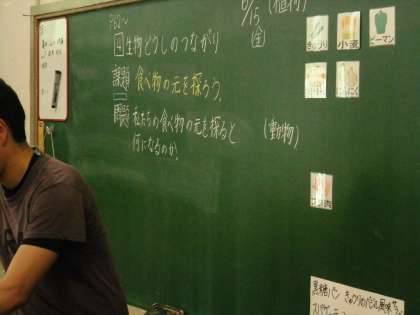 理科で「生物どうしのつながり」を学習しています。今日は食べ物を通したつながりについて調べました。カレーライスを例にまず食材を植物と動物に分けました。次の時間は食べる・食べられる関係について学習していきます。