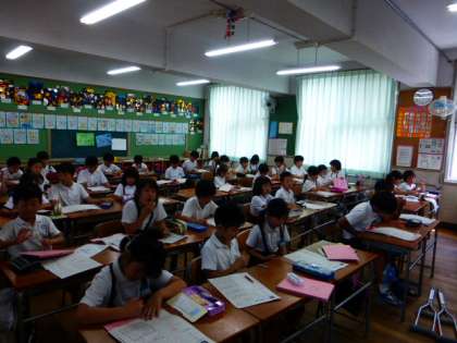3年生は、算数の時間にテストを返して、間違った問題をやり直していました。