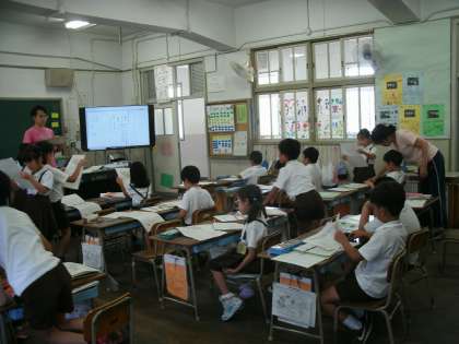 2年2組は、生活科の学習をしていました。担任の先生からテストを返してもらっているところです。