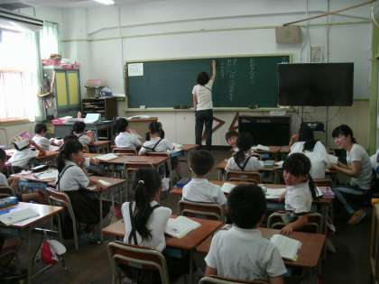 1年1組は、国語の学習をしていました。「おおきなかぶ」の音読発表会をしていました。好きな場面とその理由を最初に発表してから音読を始めます。好きな理由をわかりやすくしっかりと書いていました。音読もはきはきと上手にできていました。