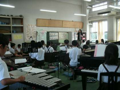 5年生は、音楽室で「銀河鉄道999」の合奏練習をしていました。