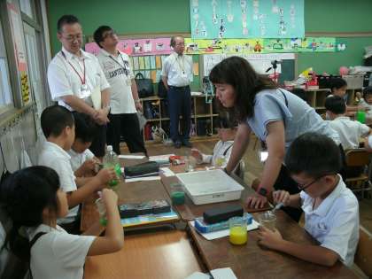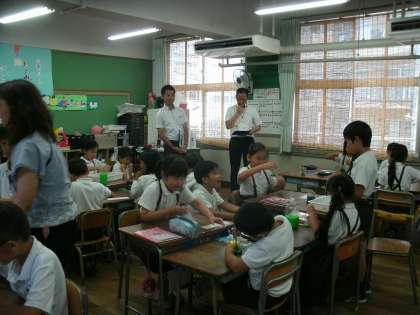 3年2組は、算数の学習をしていました。3年生で「比」の学習を試験的に取り入れることで、高学年の割合の学習でのつまづきを減少させることができないか研究授業をしているところです。