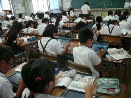 4年生は、社会科の学習をしていました。1学期の学習の復習をタブレットを使用して各自まとめていました。