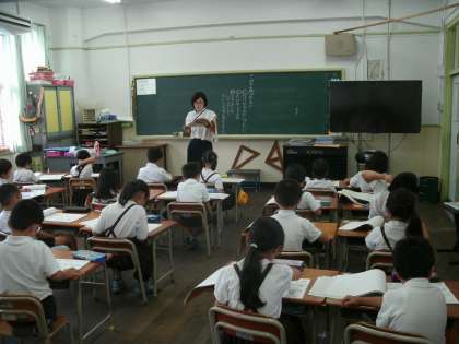 1年1組は、夏休みの宿題について、担任の先生からの説明を聞いていました。