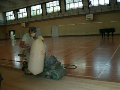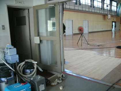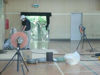本日より8月3日までの予定で講堂の床の改修工事をしています。