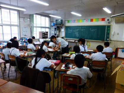 5年生は、算数の時間に習熟度別に3教室に分かれて、小数の割り算の学習をしていました。