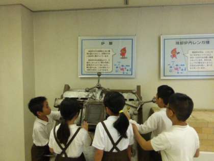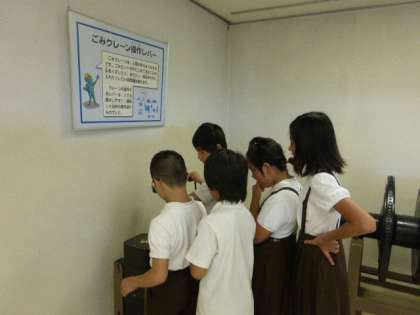 ごみクレーンを操作するレバーや炉の扉をさわる体験もできました。