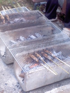 捕まえたあまごは串にさし、炭焼きにしていただきます。