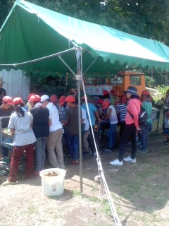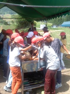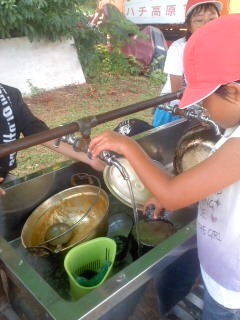 美味しいカレーライスを食べた後は、飯ごうや鍋をきれいに洗って返却します。すすやこげがついているのできれいになるまで根気強く洗います。