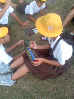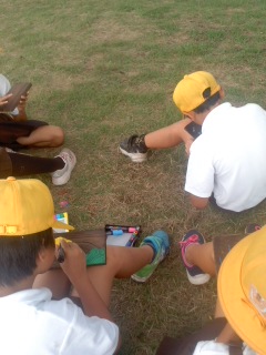 初日に磨いた焼き板に絵付けをしています。ハチ高原での思い出を描いています。