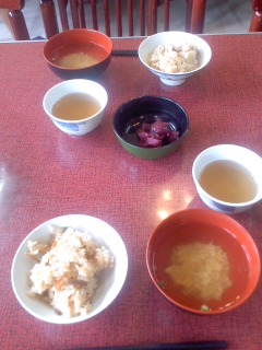 昼食は炊き込みご飯です。ハチ高原荘での最後の食事です。味わっていただきます。