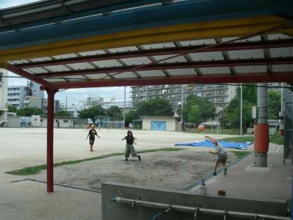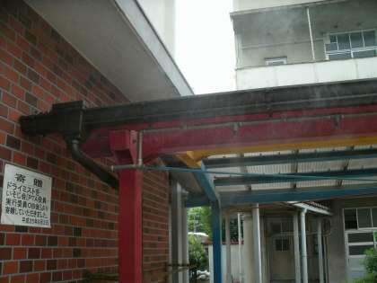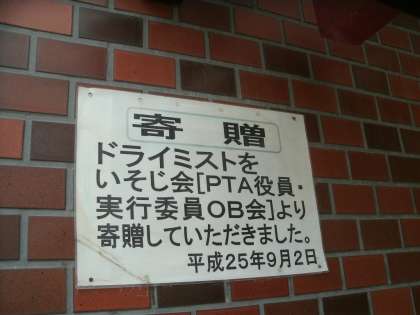 磯路小学校には、いそじ会から寄贈していただいた「ドライ型ミスト噴霧器」が、手洗い場の屋根に設置してあります。